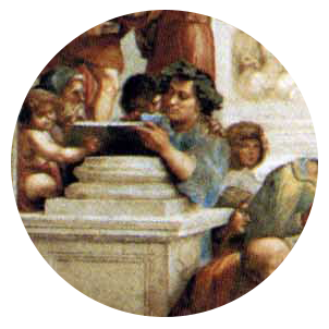 Здесь изображены Леонардо Да Винчи и Аристотель